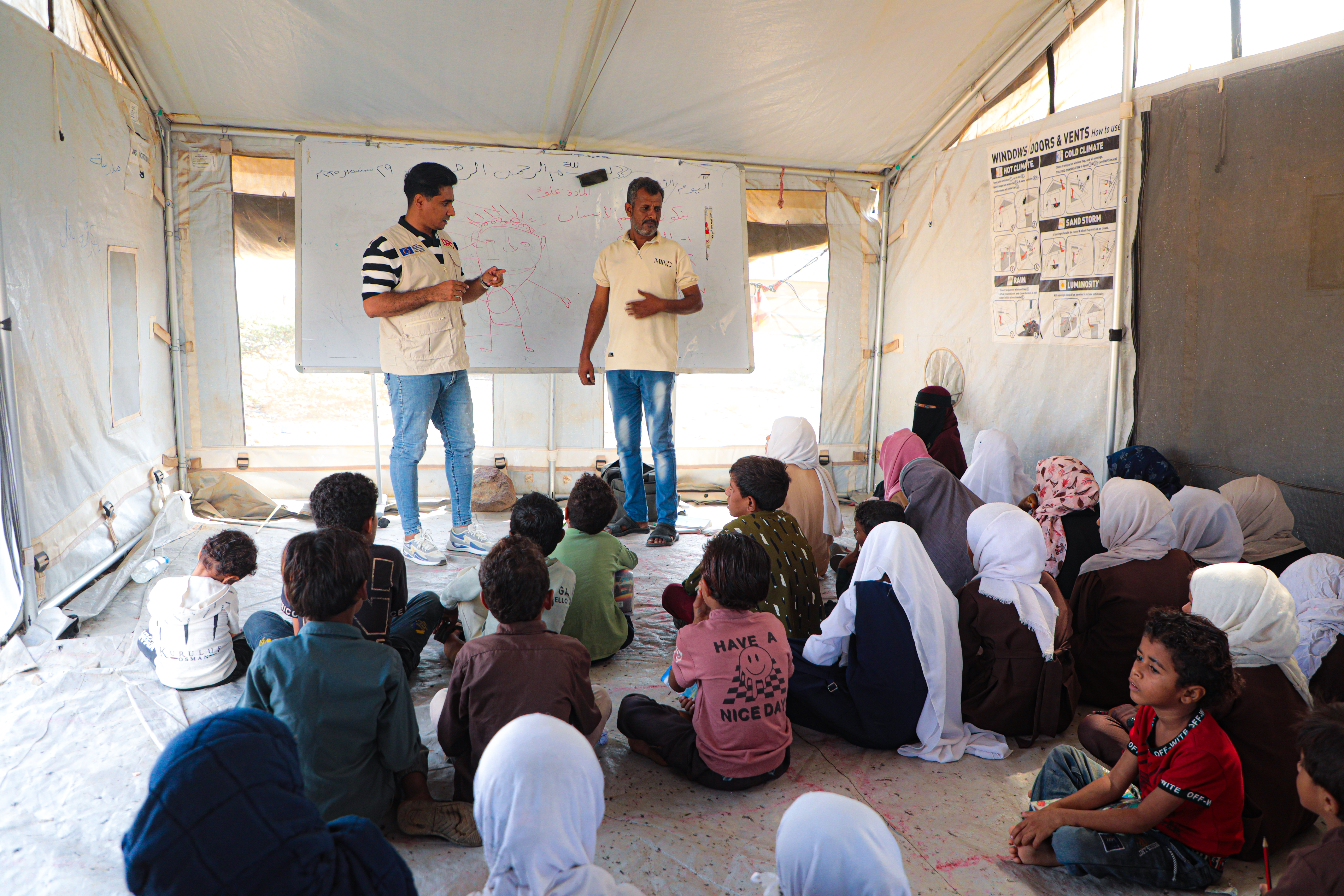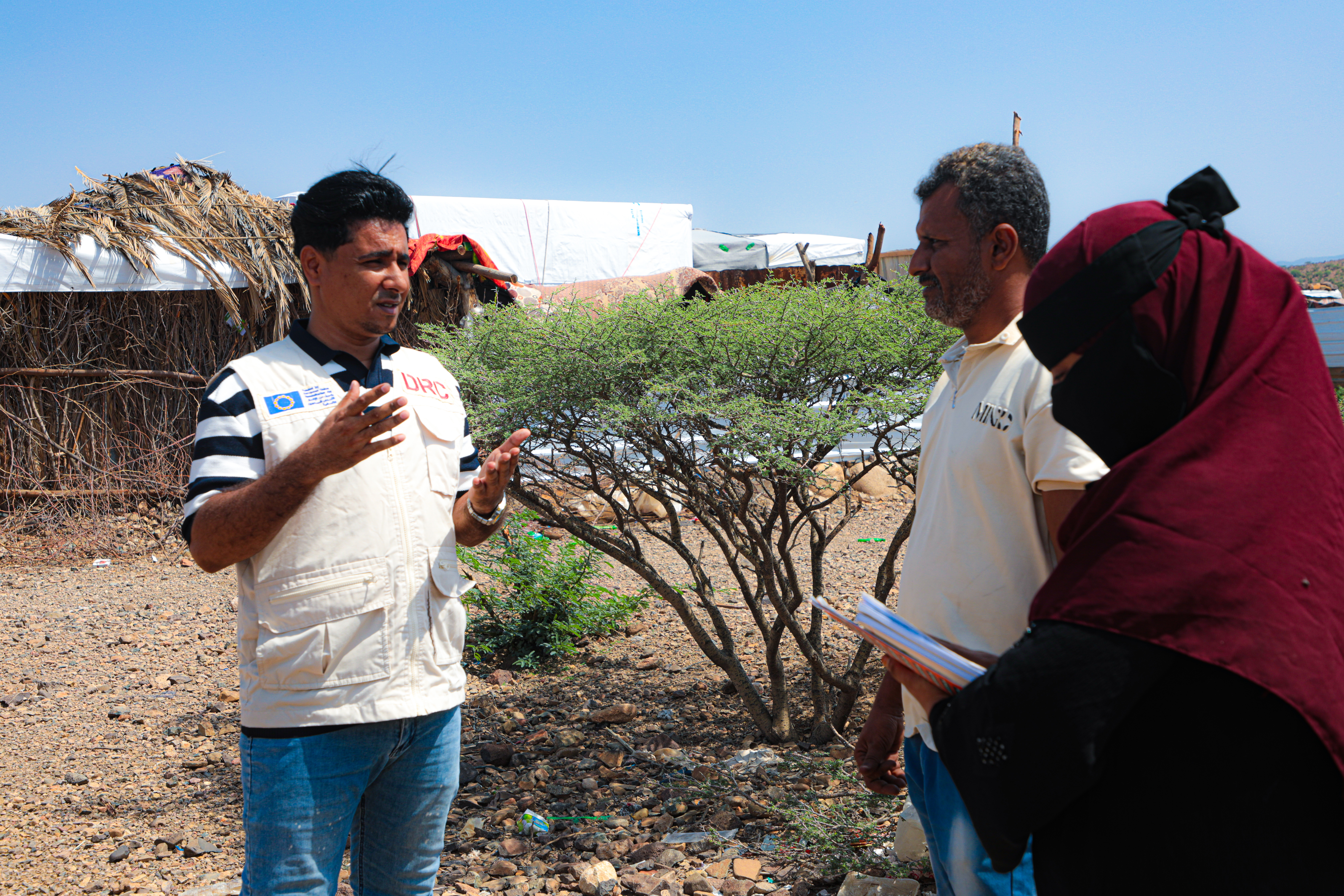 The Danish Refugee Council (DRC) regularly monitored the sites through focus group discussions, key informant interviews and household surveys. The findings of these assessments showed an urgent need to intervene to mitigate child protection risks and ensure children's right to education. DRC monitors conducted referrals to child protection actors, following the consent of the caregivers and the children, and they activated advocacy mechanisms, holding meetings with the camp's executive unit director in Mawza and with the organisation "War Child".
