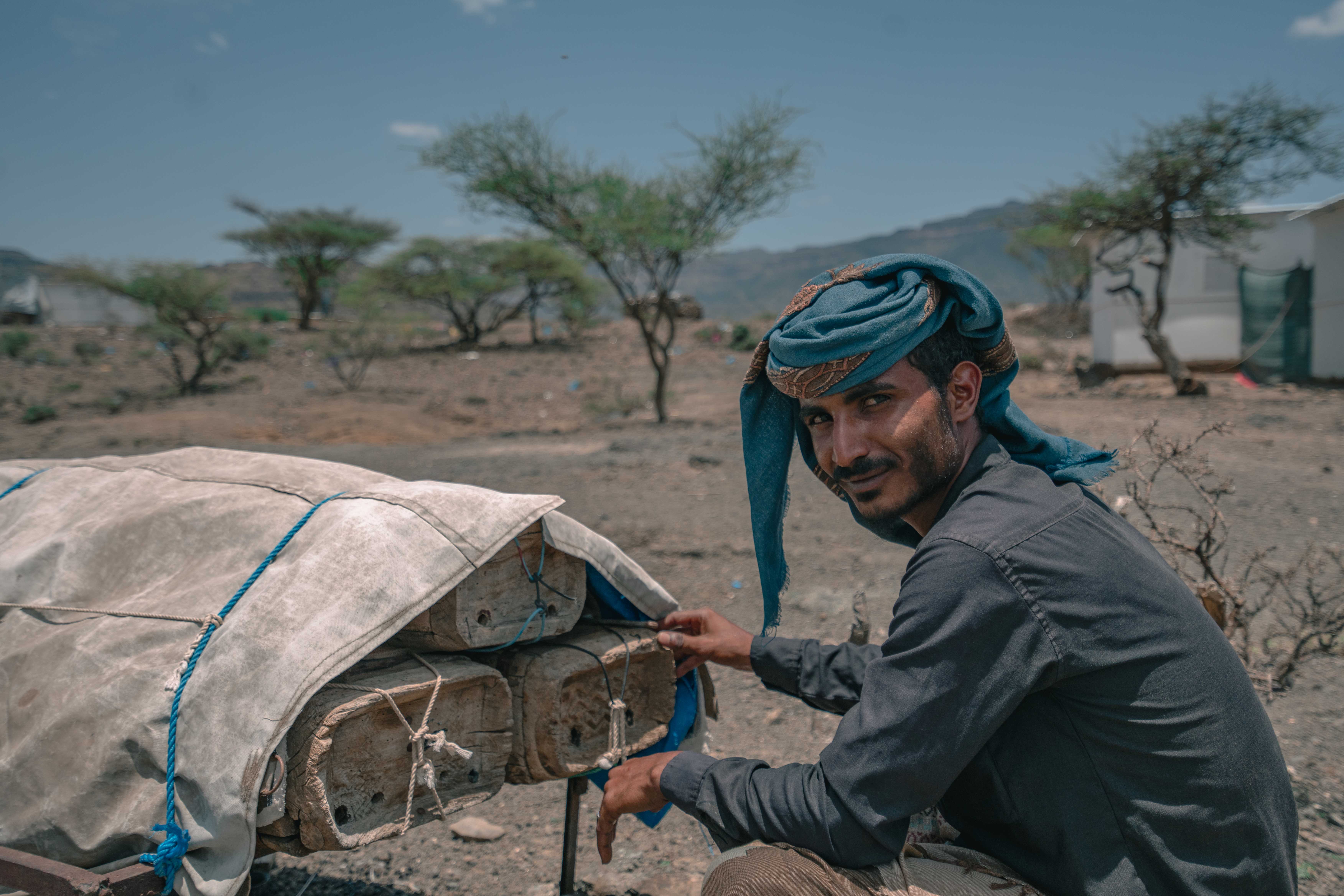 “When the airstrikes started over our village three years ago, we ran to the mountains for cover. My mother, siblings, uncles, and I fled with nothing but the clothes on our backs. We left behind the house we built and the land we farmed for food and income, fleeing for our lives until we arrived here.” He continues, “It was devastating to see our children and women without shelter, exposed to the burning sun by day and the cold by night.”