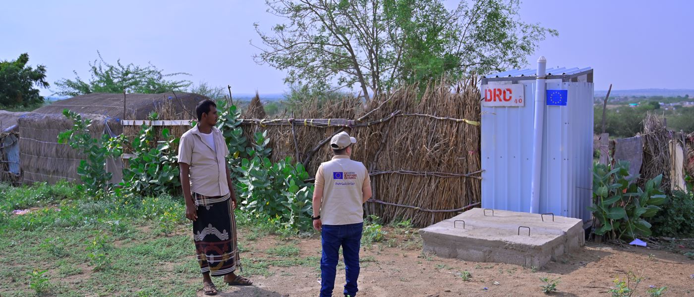 With support from the European Union (EU), the Danish Refugee Council (DRC)—a member of the Yemen Displacement Response (YDR) Consortium—constructed 146 latrines across four camps (Al-Radha, Al-Kataf, Hayjat Al-Battaria, and Dair Al-Sarh) in the Al-Battaria area of Abs District, Hajjah Governorate.