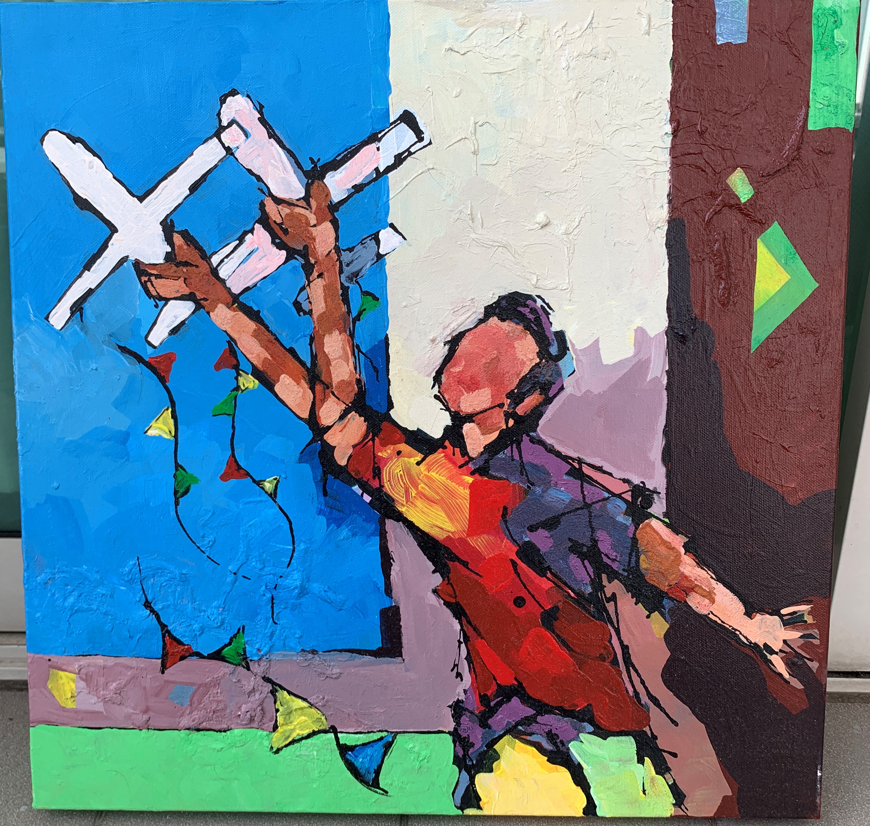 Mixed media on canvas; 19x19 in
